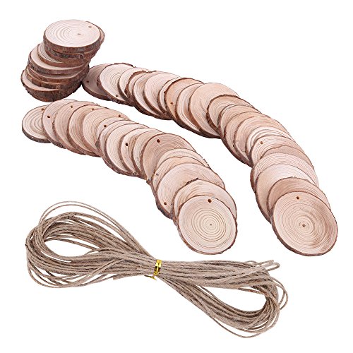 - Package: 50 pieces NaturaL Round Wood Slices + 33 feet Natural Jute Twine
