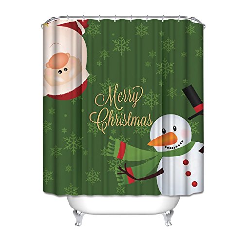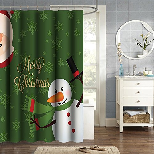 EZON-CH Home Mildew Resistant Water Repellent Washable Fabric Shower Curtain Merry Christmas Snowman Santa On Green Shower Curtain With Shower Rings(72x72IN)