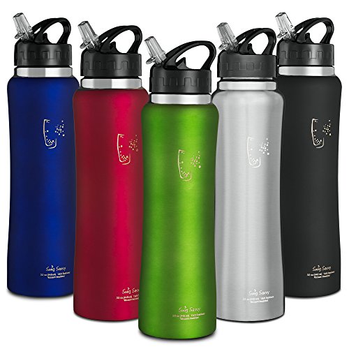 Swig Savvy's Stainless Steel Insulated Water Bottle Wide Mouth 24oz / 32oz Double Wall Design with Straw Flip Cap - Great For Kids - Sweat Proof - Including Water Bottles Pouch
