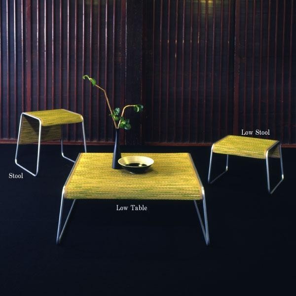 無機質ながらも繊細なメタルフレームと、まるでファブリックのように織り上げられた色鮮やかないぐさの組み合わせは、インテリアデザイナーの方々にも好評!!そのスタイリッシュな空間を演出できるデザインは、ホテルのカフェやラウンジ、スイスやパリの日本料理店などにも使用されています。 |