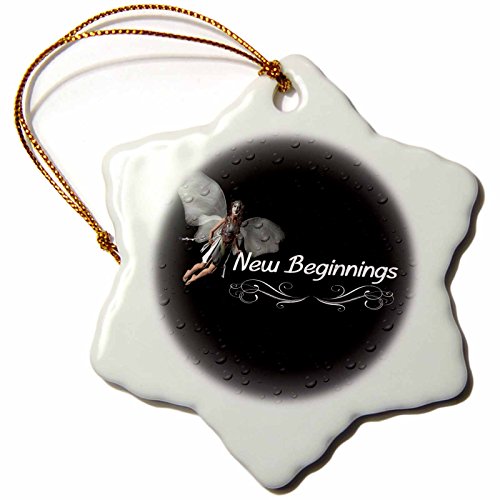 3dRose orn_54599_1 New Beginnings Snowflake Decorative Hanging Ornament, Porcelain, 3-Inch
