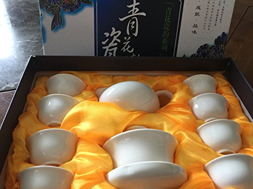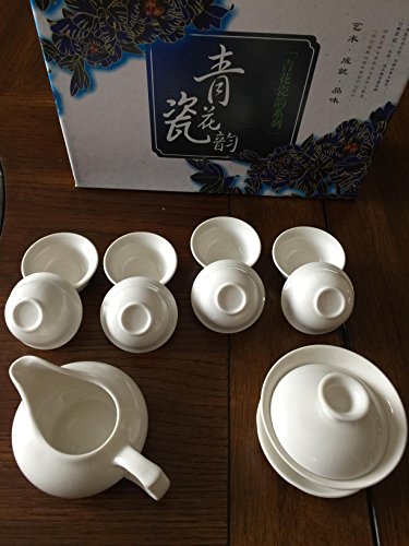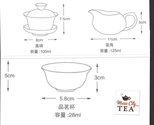 Studio : Music City Tea Publisher : Music City Tea Product Description Tea connoisseurs often brew the tea right in the gaiwan, although it may also be used conventionally as a tea cup, the lid serves the dual function of keeping the tea warm and also blocks the tea leaves from being consumed. This whole set comes with one Gaiwan, one ocean, and 8 mini tiny tea cups,The gaiwan is 3.5" wide x 3.25" tall and holds up to 4 ounces of tea to lid level. 0