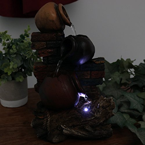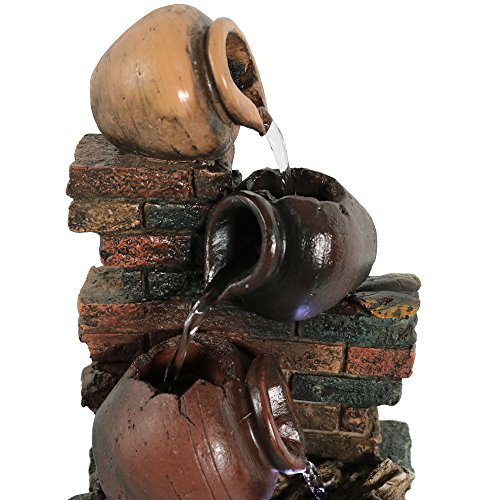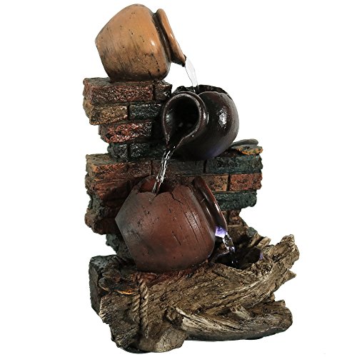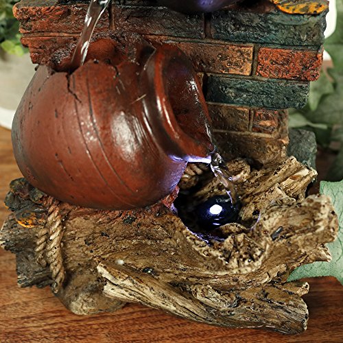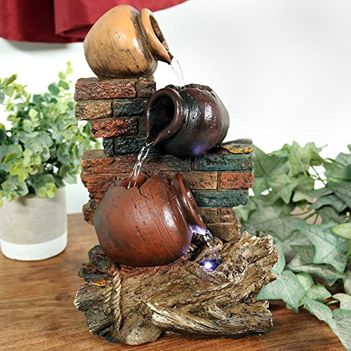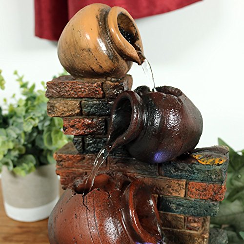 Sunnydaze Rustic Brick Wall and Jugs Tabletop Fountain with LED Light, 10.5 Inch