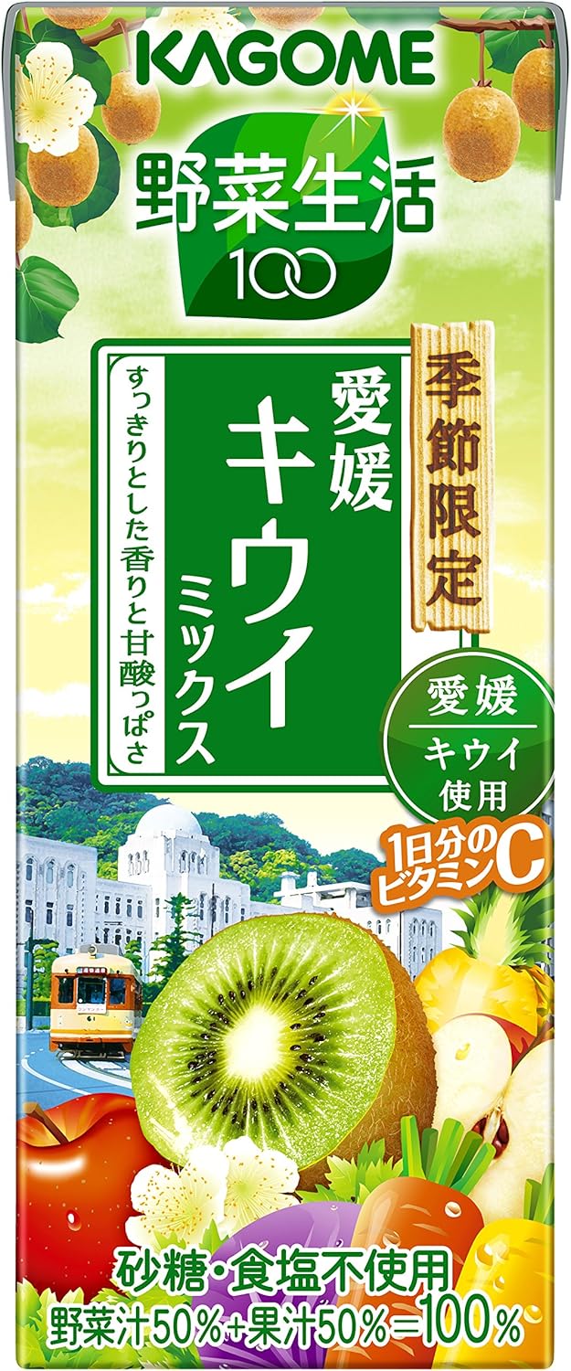 原材料:野菜(にんじん、ピーマン、ほうれん草、アスパラガス、小松菜、クレソン、かぼちゃ、紫キャベツ、ブロッコリー、メキャベツ(プチヴェール)、ビート、赤じそ、セロリ、レタス、はくさい、ケール、パセリ、なす、たまねぎ、だいこん、キャベツ)、果実(りんご、パインアップル、キウイフルーツ(愛媛産100%)、レモン)/クエン酸、香料、ビタミンCカロリー:(195mlあたり)87Kcal商品サイズ(高さx奥行x幅):12.4cm×34.8cm×15.9cm