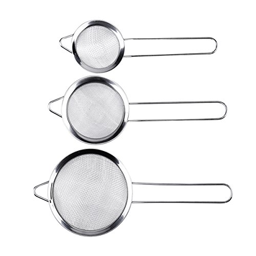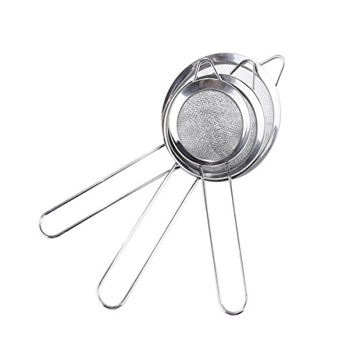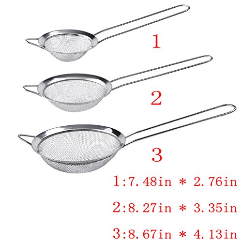 Kihappy Fine Mesh Stainless Steel Loose Tea Food Strainers with Handle for Kitchen Use Utensil, Silver, Set of 3