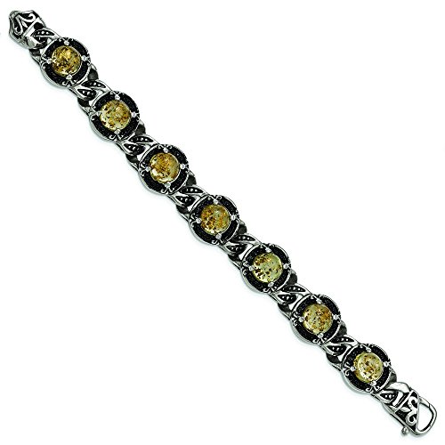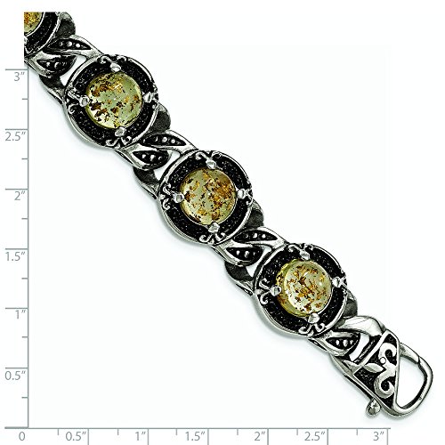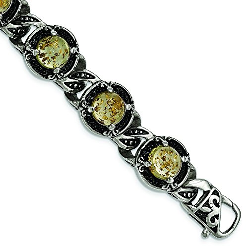 Stainless Steel Polished Antiqued Epoxy Resin With Gold Tin Bracelet - 9 Inch - In Solid Stainless Steel - JewelryWeb Style: QTB312105 - FREE gift-ready jewelry box