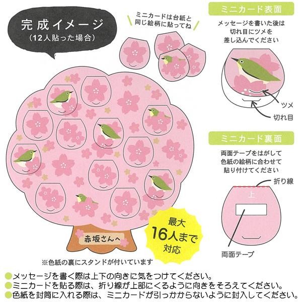 | 立てて飾れるスタンドタイプの色紙。華やかなサクラのデザインが、贈る相手に思いを届けます。最大16名まで対応しており、付属のミニカードにメッセージを書くため、回覧する必要もありません。 |