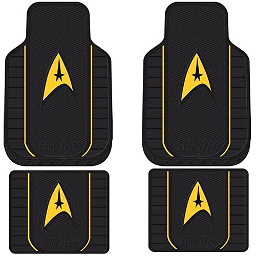 -. Brand : LA Auto Gear -. Color : Yellow -. Feature : Officially licensed Star Trek product and manufactured by Plasticolor inc. / Protects vehicle's carpet against spills, stains, dirt and any debris / Vibrant, molded in colors will not fade / Approx. dimensions - [27 / Unit of measure - 1 set of 4 pcs (2 front mats + 2 rear mats) -. Label : LA Auto Gear -. Manufacturer : LA Auto Gear -. ManufacturerPartsWarrantyDescription : Parts -. MPN : TREK4 -. PackageQuantity : 1 -. PartNumber : TREK4 -. ProductGroup : Automotive Parts and Accessories -. ProductTypeName : AUTO_ACCESSORY -. Publisher : LA Auto Gear -. Studio : LA Auto Gear -. Title : Star Trek Delta Command Logo Yellow Gold Car Truck SUV Front & Rear Seat Rubber Floor Mats - 4PC