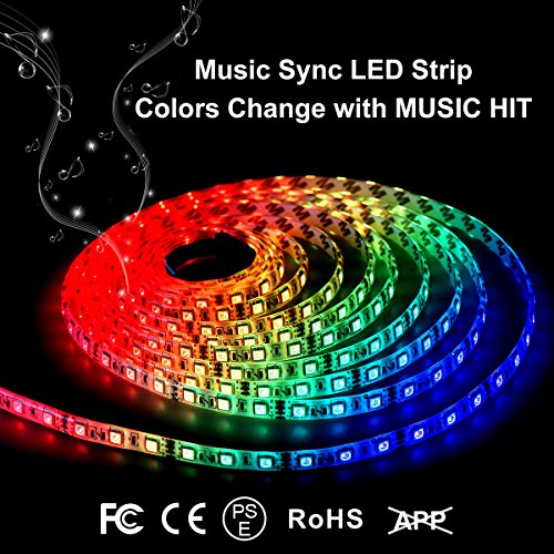 Led Strip Lights IP65 Waterproof LED Strip Light 16.4FT Music Strobe Light Bedroom String Lights Car LED Strip Light 300 Units 5050 RGB Strip Lights by DotStone
