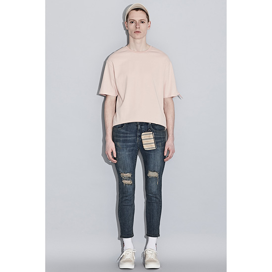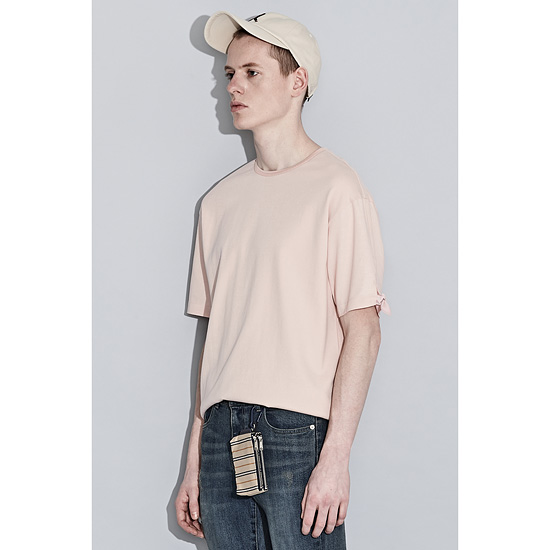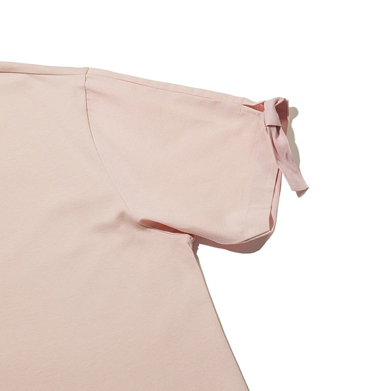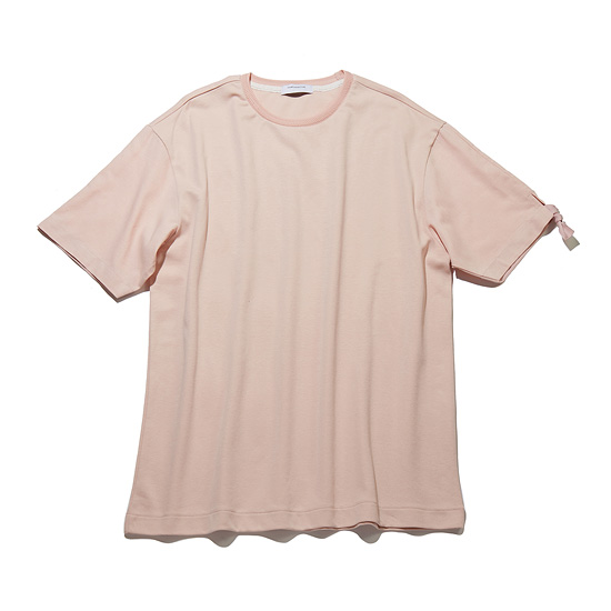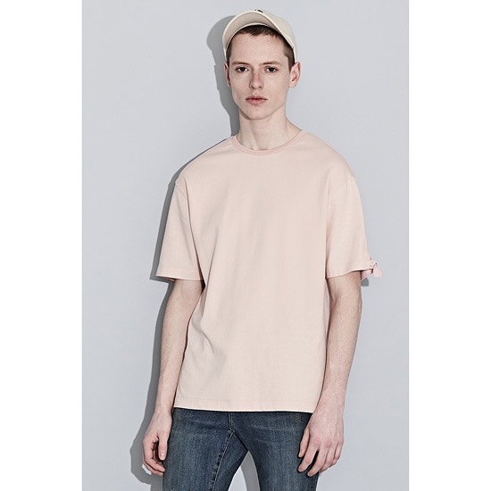 - 왼쪽 커프스 묶어서 연출 가능한 디테일로 포인트를 준 반팔 티셔츠.