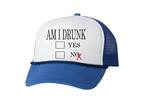 Product Description One Size fits All. This funny trucker Hat is Sure to get The Laughs at Any Party This Baseball Cap would Make a Great Gift Idea.Beer Drinking Hat Am I Drunk 0