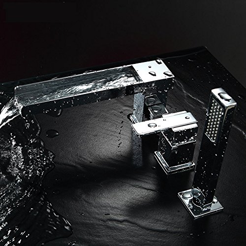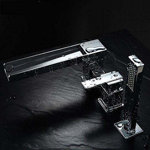 Lovedima Contemporary 3-Hole Bathroom Waterfall Bathtub Faucet Roman Tub Filler with Handheld Shower