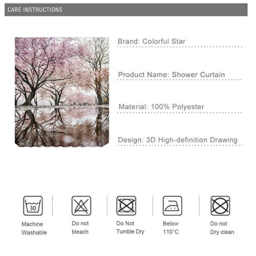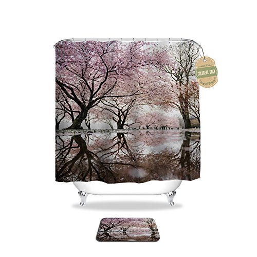 Colorful Star Japanese Cherry Blossoms Design Shower Curtain ,Waterproof&Antibacterial&Eco-Friendly made of 100% Polyester Fabric ,Non Toxic, Odor Free, Rust Proof Grommets 72"x72"