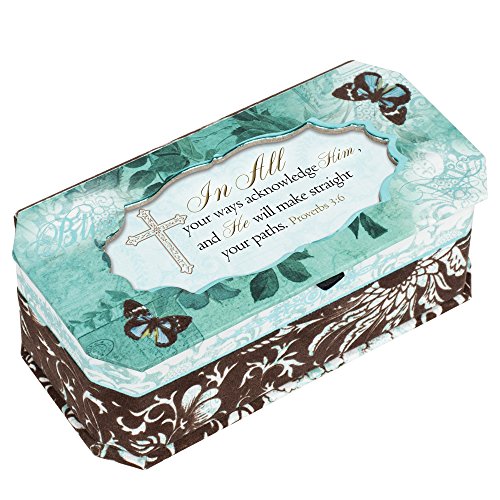 All Your ways Acknowledge Him Aqua Blue Butterfly Jewelry Music Box Plays How Great Thou Art