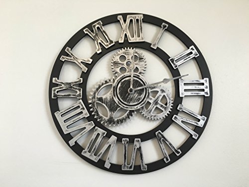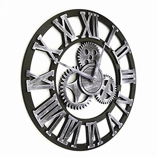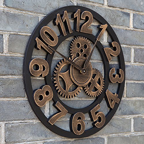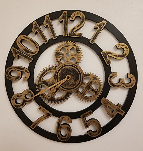 -. Feature : Large 16 Inch Antique Handmade Wooden Clock by Chevi K. / Vintage Retro Style, Metallic Rustic Design for Home or Office / Comes in 4 Styles. Gold with Numbers, Gold with Roman Numerals, Silver with Numbers, Silver With Roman Numerals, / This Wall Clock would make a great gift and a good impression for any special occasion / Requires 1 AA battery not included
