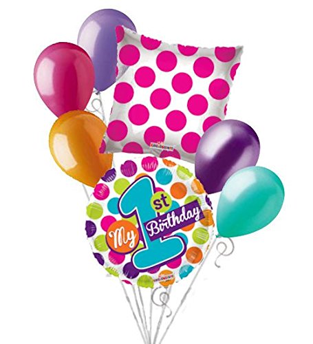 -. Title : 7 pc My 1st Happy Birthday Bright Dots Balloon Bouquet Party Decoration Girl