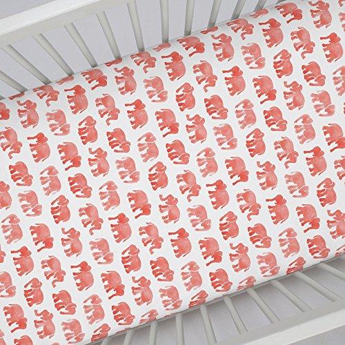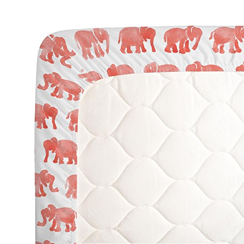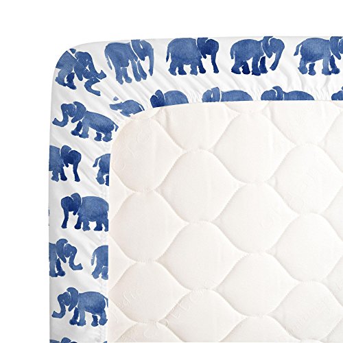 -. Binding : Baby Product -. Brand : Carousel Designs -. Feature : ORGANIC 100% COTTON, SUPER SOFT - Carousel Designs crib sheets are made with 100% certified organic cotton fibers, which are P.R.Inted in the USA with certified organic inks. Both the cotton and the inks are third party GOTS (Global Organic Textile Standard) certified. Each crib sheet is a woven 200 thread count fabric that is perfect for your baby girl or baby boy. / MADE IN THE USA - Carousel Designs makes all of its products right here in the USA. This guarantees the products you use for your precious baby are of the highest quality and because we ship directly to you it is at a P.R.Ice that can't be beat. You will not find another crib sheet of this quality and P.R.Ice made in the USA! / FITS STANDARD CRIB MATTRESSES PERFECTLY - Every sheet is expertly sewn with deep pockets and elastic all the way around to hug your baby's mattress securely. Our fitted crib sheets are made for standard crib and toddler bed mattresses measuring 28" x 52". With thousands of customers since 1988 you can count on this being the best crib sheet you'll own! / MACHINE WASHABLE AND VERY DURABLE - We have been making crib sheets for almost 30 years and we know how many washes they go through! Our sheets are guaranteed to last through multiple washes while maintaining their luxurious feel. Make sure to wash your crib sheet before use to ensure the best fit and softness for baby. / PERFECT GIFT FOR BABY - Moms love Carousel Designs products and especially our fitted crib sheets. Whether you're giving a gift from a baby registry or looking for something to give at a baby shower, Carousel Designs makes the highest quality baby bedding and nursery decor all here in the USA. Specifically, our personalized and custom crib sheets have been known to be the hit of many baby showers. -. Label : Carousel Designs -. Manufacturer : Carousel Designs -. ProductGroup : Baby Product -. ProductTypeName : BABY_PRODUCT -. Publisher : Carousel Designs -. Studio : Carousel Designs -. Title : Carousel Designs Watercolor Elephants Crib Sheet