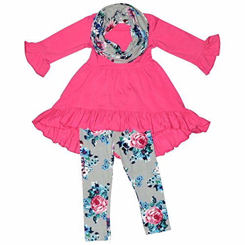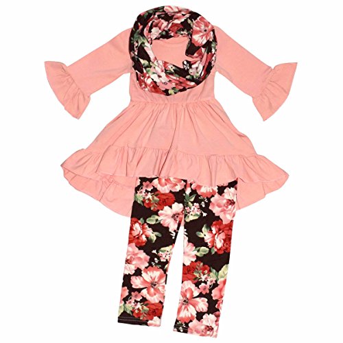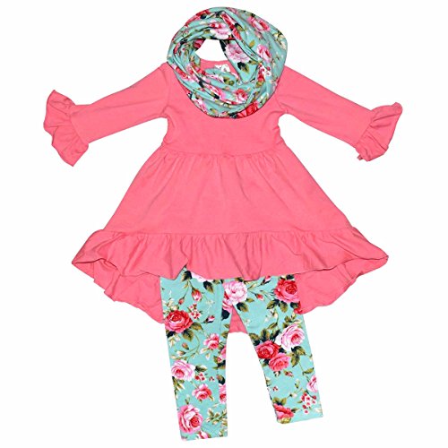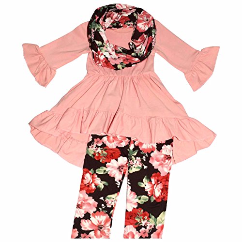 STYLE [EVERGREEN]: A versatile piece that is in style year-round, this is the perfect addition to your little girl's wardrobe! This outfit is great to wear on playdates, at school, for photo shoots, at family gatherings or even just lounging around the house! The matching floral pattern on the leggings and scarf make this one an eye catcher.