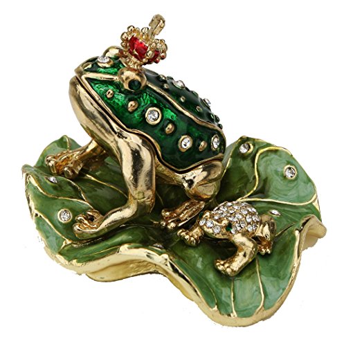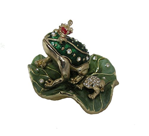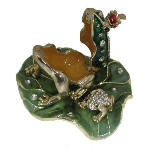 -. Feature : "You have to kiss a lot of frogs before you find your P.R.Ince!" Set with dozens of shimmering Swarovski Crystals on a meticulously hand enameled background. / Measures approximately 3.5 inches square. Opens to reveal a storage compartment that's been finished in a glossy enamel. / The Frog P.R.Ince! This figurine is also a keepsake box that will be cherished in the years to come. / Perfect for Bachelorette parties or collectors. Whimsical toad wears a tiny crown and shares his Lily Pad with a tiny crystal frog. / Limited edition item. 100% Satisfaction Guaranteed! Delivered in a padded, satin lined, presentation box; with a manufacturer's certificate of authenticity.