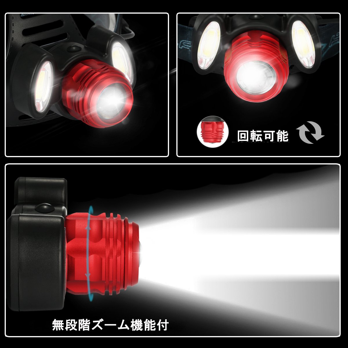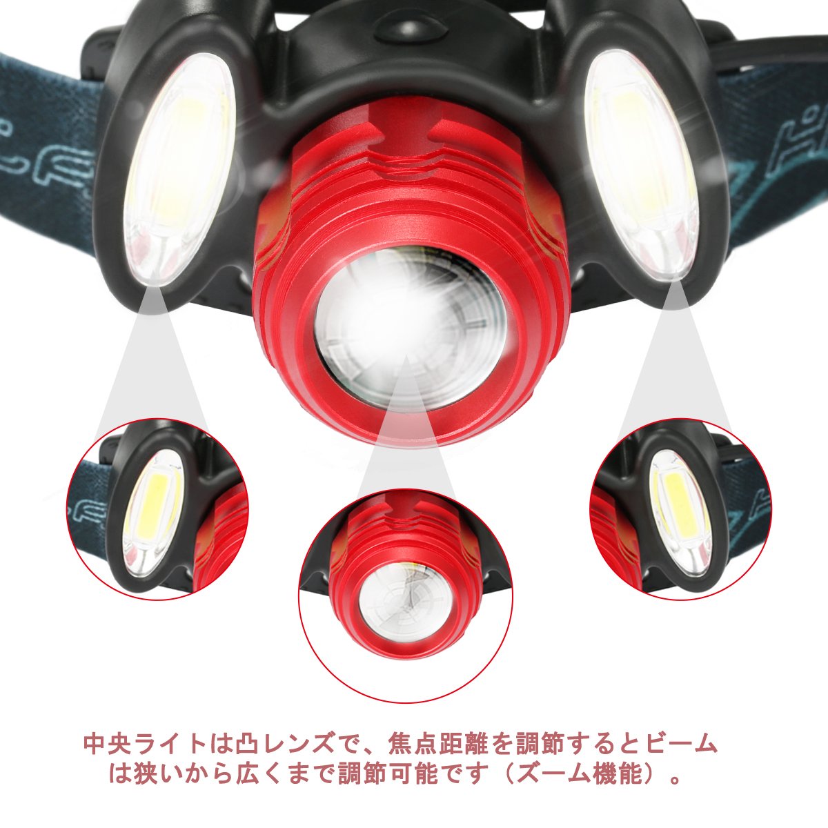 The center light is a convex lens, and when the focal length is adjusted, the beam is adjustable from narrow to wide (zoom function).