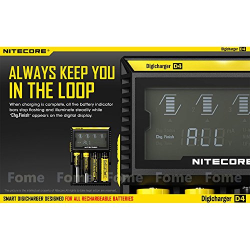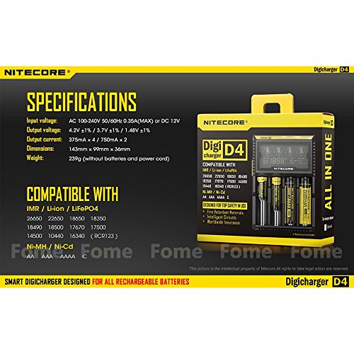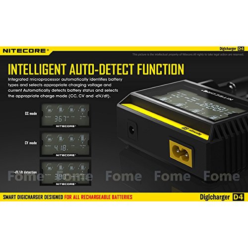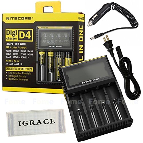 Smart Battery Charger, iGrace Nitecore D4 Charger with Integrated LCD Panel Clearly Displays For Li-ion Ni-MH And Ni-Cd Rechargeable Batteries with 12V Car Adapter and iGrace Battery Box