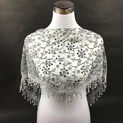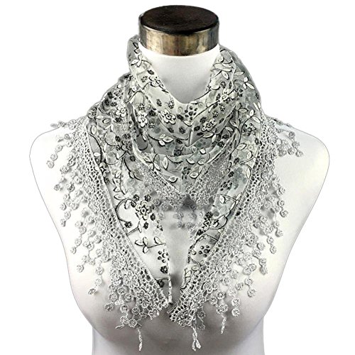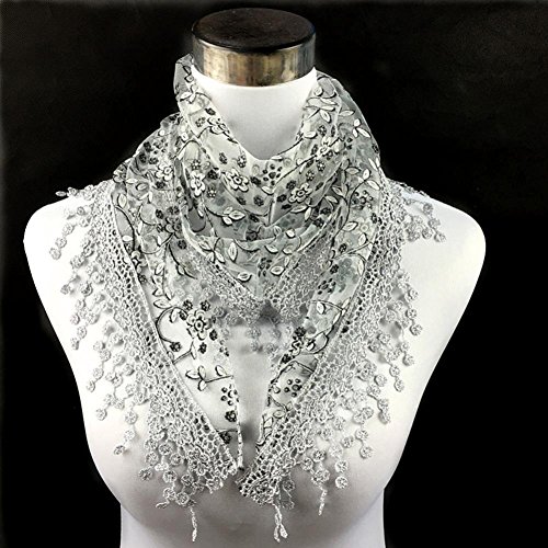 | (WILLTOO)/Accessories/Cold Weather Accessories/DIRECT FROM USA/Scarf, WILLTOO Lace Tassel Sheer Floral Print Triangle Mantilla Scarf Shawl |
