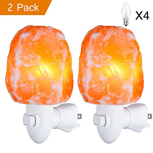 Himalayan Salt Lamp, Natural Crystal Pink Salt Rock Lamps Night Light with 4 Bulbs, ETL Approved Wall Plug Salt Light for Air Purifying, Lighting and Decoration - 2 PACK