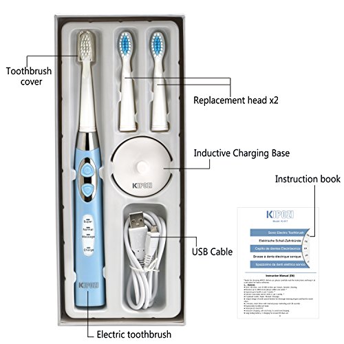Your package includes-Electric toothbrush x1, Replcement head x2, Inductive Charging Base x1, USB Cable x1, Our friendly service and one year warranty