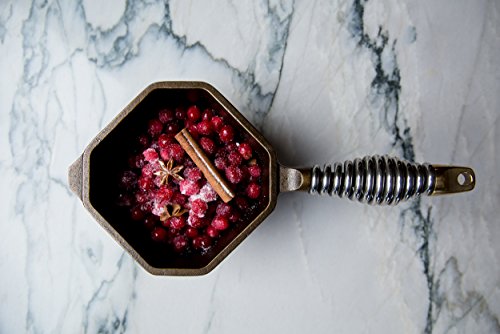 Prevents caramelizing and scorching of sweet secret sauces- it's a go-to for perfect reductions and glazes too. Beyond sauces, our cast iron sauce pot is excellent for baked beans, polenta or grits. Works great for baking delicious single-serve brownies, cakes and cornbread. Some even throw it in their wood-fired ovens for single-serve lasagna.Feature