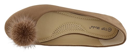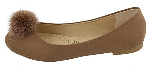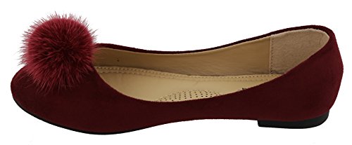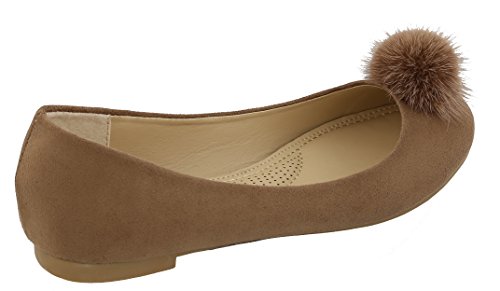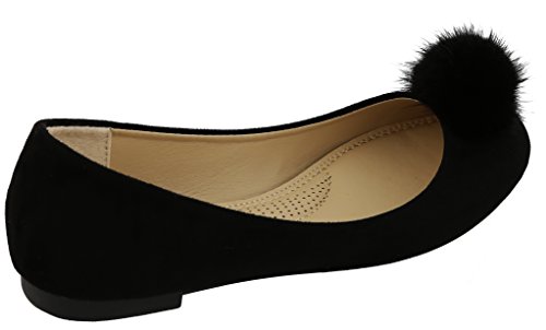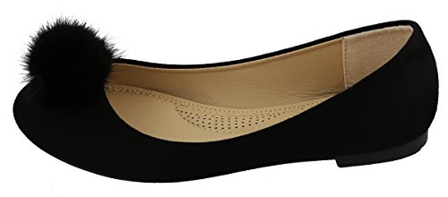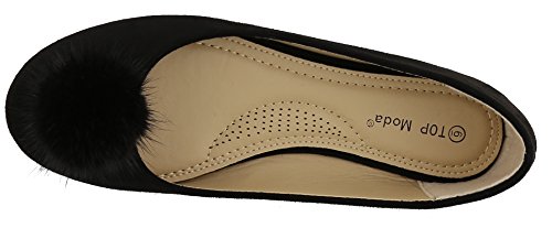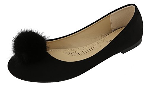 Top Moda Women's Faux Fur Pom Pom Closed Toe Ballet Flat