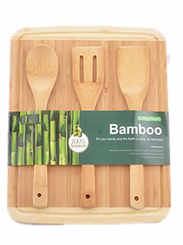 -. Title : Interiorca Non-slip Bamboo Cutting Board with Juice GrroveKitchen Chopping Block 15x 12with Cooking Utensils Set [並行輸入品]