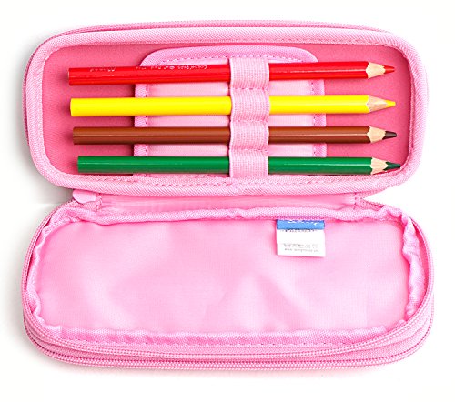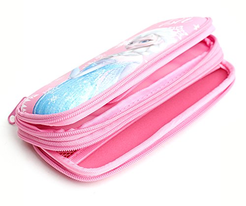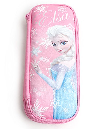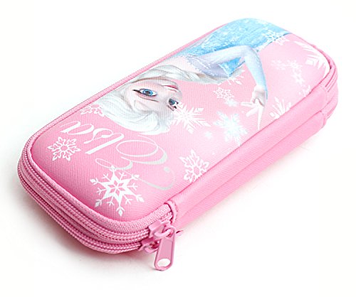 Disney Marvel Mickey Minnie Frozen Double Zippered Hard EVA Light Pencil Case Holder for Girls,Boys, Adult (Light Pink - Elsa)