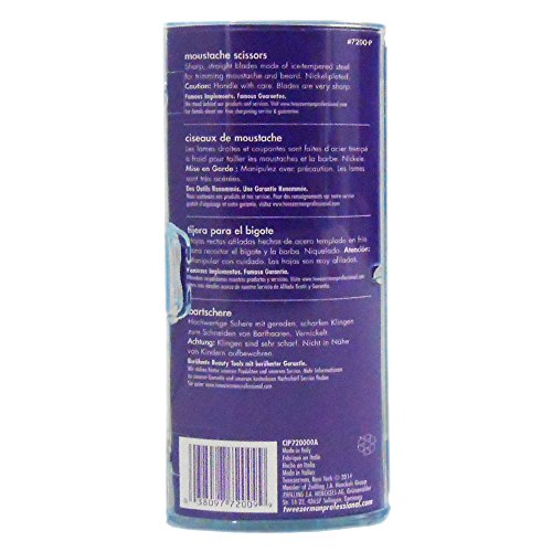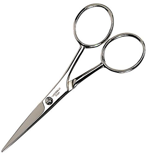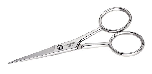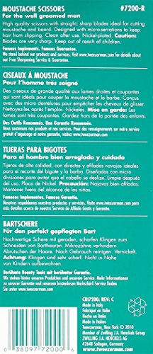ReleaseDate : 2009-07-13 Studio : Tweezerman Publisher : Tweezerman Binding : Health and Beauty Product Description Tweezerman Stainless Steel Moustache scissors features sharp, straight blades for precise trimming of moustache, beard and brow hairs. Large finger loops provide added control. 0