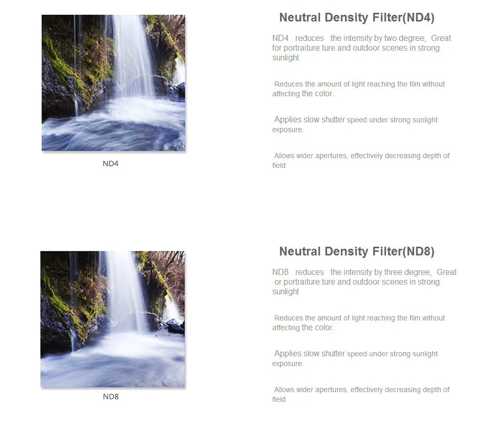Model Number:ND2 ND4 ND8 Lens Filter Set