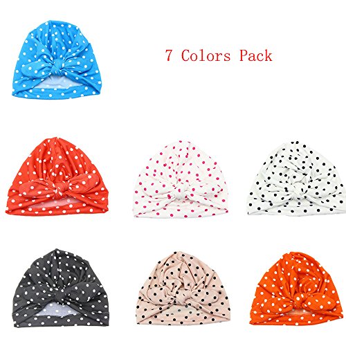 Udobuy 7 Pcs Headband Updated Version Baby Hat- Newborn Baby Girl Soft Cute Turban Knot Rabbit Hospital Hat (Dot 7 Pcs Set)