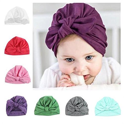 Udobuy 7 Pcs Headband Updated Version Baby Hat- Newborn Baby Girl Soft Cute Turban Knot Rabbit Hospital Hat (7 Pcs Set Knotted Hat) Multicolored