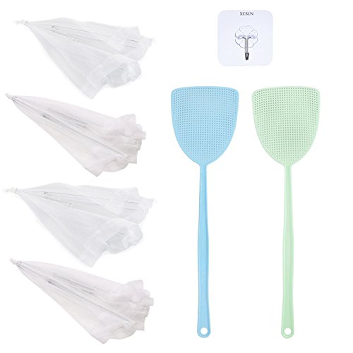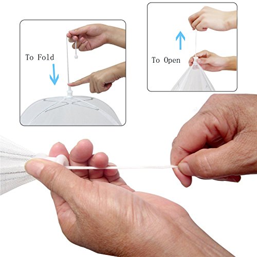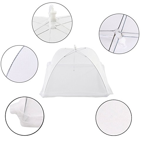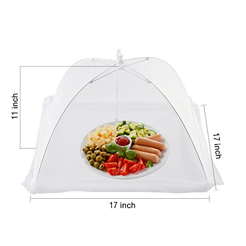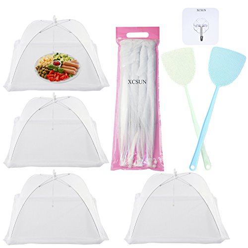 XCSUN Large Pop-Up Mesh Screen Food Cover Net Tent Umbrella 17 inch, with Fly Insect Swatters and Adhesive Wall Hooks (Set of 7)