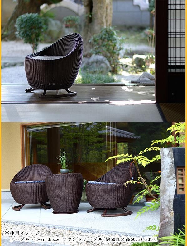 | 籐ならではのしなやかさと座り心地。360度回転機能付チェア。 |