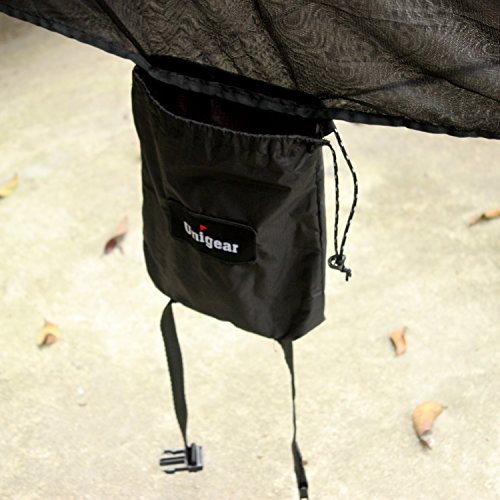 100% Polyester Mesh No-See-Um Netting, offer 360°protection with a spacious interior and adequate head room. Rest peacefully in your hammock without the bother of bugs with Unigear bug net