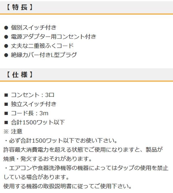 fk094igrjs電源アダプター用コンセント付き丈夫な二重被ふくコードです サイズ 個装サイズ:11×27×4cm 重量 個装重量:330g 生産国 中国 個別スイッチ付き節電タップ 電源アダプター用コンセント付き丈夫な二重被ふくコードです