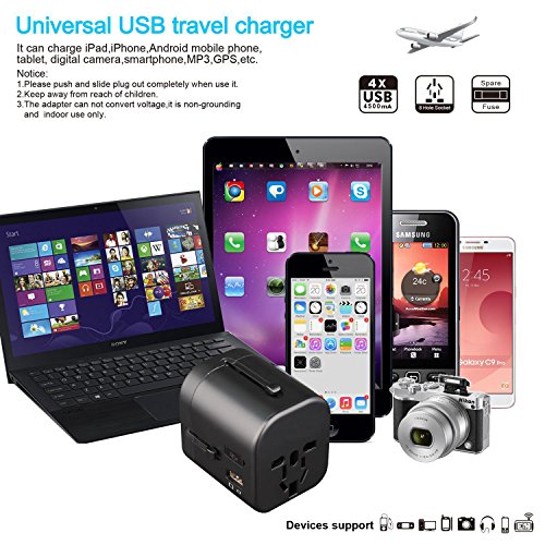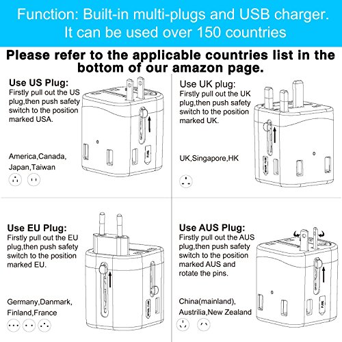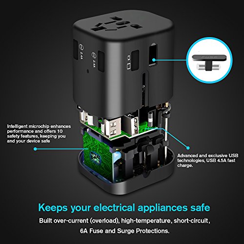 [CHARGING FAST] Kompakter und leistungsstarker World Adapter Multi-Plug sorgen fur eine schnelle, sichere und effiziente Aufladung fur alle Ihre Gerate.Plugs und USB-Ladegerat zur gleichen Zeit ohne Chaos uberhaupt, Patentierte Platine schutzt Ihre wertvollen Gadgets vor Kurzschlussen.