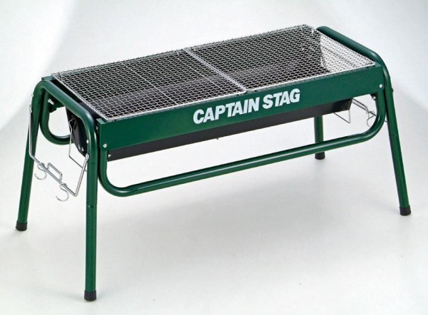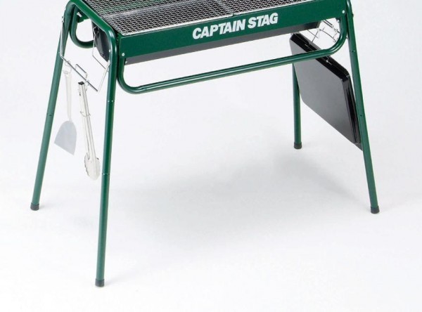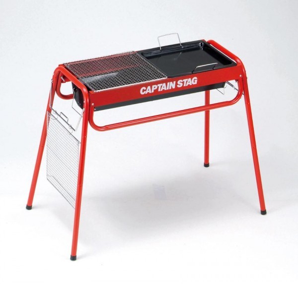 | 素材・材質 | 本体フレーム・炭入・脚:鉄(エポキシ塗装) 鉄板焼器:普通鋼板(板厚1.4mm、表面加工:ほうろう) バーベキュー網・ハンドル・バー・フック:鉄(クロムめっき) 目皿:鉄(カチオン電着塗装) |