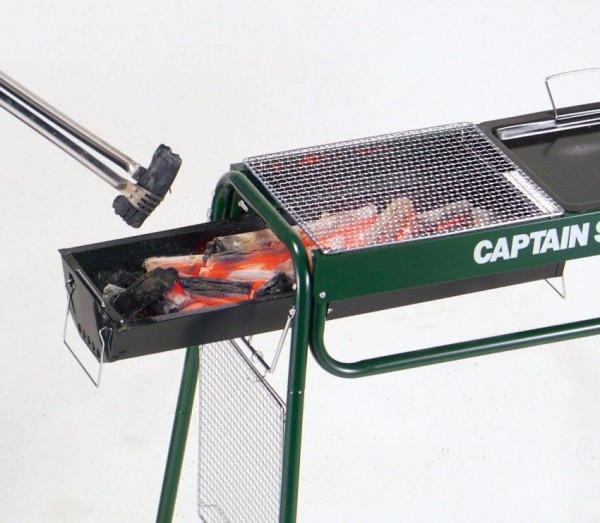| スライド式炭入れで扱いやすいグリルフレーム。 |