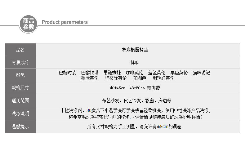 Size: 40x45cm oval chair cushion 48X50cm oval chair cushion 45 * 80cm