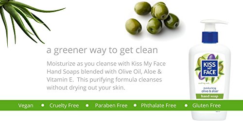 Kiss My Face Moisture Liquid Hand Soap, Olive Oil & Aloe Vera 9 oz Pumps (Pack of 6)