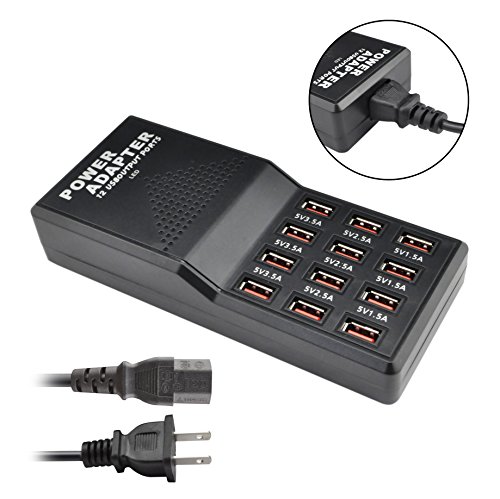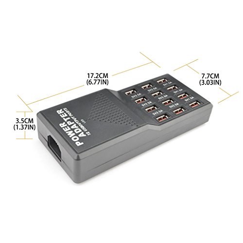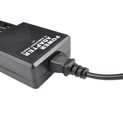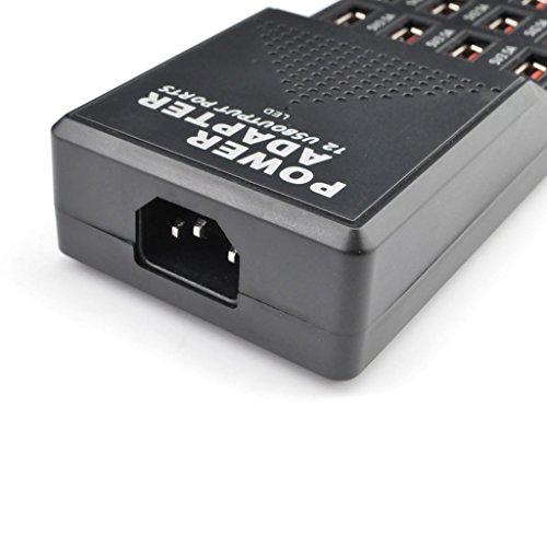 iKKEGOL 60 Watt (12 Amp) 12-Port USB Rapid Charger. Smart USB Charger with 5V 1.0-3.5Amp Auto Detect Technology for iPhone,iPad,Android and More [Black] (12-port)