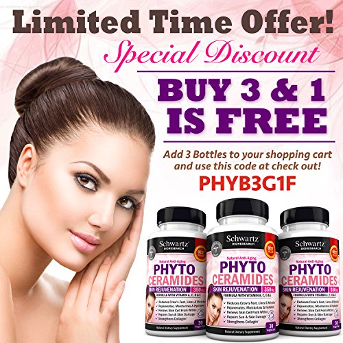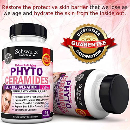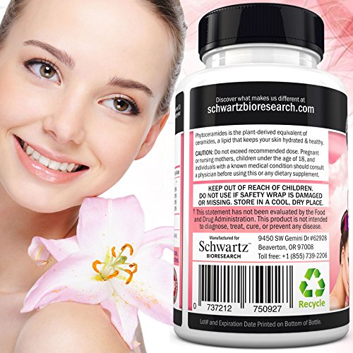 - Feature : SAY GOODBYE TO WRINKLES - FAST EASY LONG LASTING RESULTS FROM THE INSIDE OUT - Release the outer beauty in you without anti-aging facial eye creams or serums. You will start seeing results within the first 20 days by taking 1 capsule a day. This skin hair and nails supplement is better than phytoceramides plus biotin. Be sure to Buy 2 Bottles or More to get the Best Results, as we run out of stock very fast! Enjoy your youthful look again in just a few weeks! / DOCTOR FORMULATED MOST EFFECTIVE ANTI-AGING FORMULA - Guaranteed to work, our Phytoceramides is the best on the market! Clinical studies have prove that Schwartz Bioresearch Phytoceramides 350 mg Supplement reduces fine lines, eliminates wrinkles and crow's feet and promotes smooth, supple skin in less than 3 WEEKS! Hydrate your skin from the inside out! Our Phytoceramides 350 mg plant derived is fortified with Vitamins A, C, D, and E for powerful, beautifying results designed to rewind time for younger-looking skin without the chemical burns or startled Botox expression. / 100% SAFE AND NATURAL SCIENTIFICALLY TESTED INGREDIENTS - Schwartz Bioresearch is a leading brand in 100% natural, pharmaceutical grade dietary supplements. Proudly manufactured in the USA, in a 300,000 sq. ft. FDA registered state-of-the-art facility with strict adherence to Good Manufacturing Practices (GMP). All batches are 3rd party tested to guarantee the purity and quality of the ingredients. Our capsules are vegetarian. We manufacture only the very best products for our customers. NO fillers, NO binders and NO artificial ingredients and our 100% gluten-free capsules are made from real potatoes, not rice. Dermatologist approved. / CUSTOMERS SAY SCHWARTZ BIORESEARCH SUPERIOR PHYTOCERAMIDES ARE GREAT FOR → ✔Skin Renewal ✔Hair and Nail Hydration ✔Age Prevention ✔Skin Restoration ✔ Skin Rejuvenation ✔Facial Rejuvenation ✔Smoother, Younger Looking Skin ✔Dry Skin ✔Skin Hydration ✔Shiny Silky Hair ✔Anti-Aging ✔Reduction of Facial Wrinkles ✔Healthy Skin ✔Increased Collagen Production ✔Improved Skin Tone ✔Reducing Fine Lines, Wrinkles and Crow's Feet ✔Reversing Sun Damage ✔Soft Smooth Skin ✔Strong Healthy Nails ✔Fading Sun Spots ✔Lightening Dark Circles ✔Aged Skin ✔Saving Money On Expensive Moisturizers / AMAZING RESULTS IN 2 WEEKS - NO DANGEROUS SURGERY - IT'S A FACELIFT IN A BOTTLE! - No more dark circles, no more old age spots, just naturally radiant skin- fast! Full, plump and healthy skin means no more wrinkles, no more flakes and no more dry, itchy patches. Get the skin care secret Japanese women have guarded for centuries with Schwartz Bioresearch Natural Anti-aging phytoceramides bri nutrition. Better than Ceramide-PCD 40 mg or phytoceramides brinutrition our skin hair nails cutting edge all-natural formula makes this "Facelift in a Bottle" your top-secret beauty weapon. As seen in Dr. Oz, phytoceramides capsules are guaranteed to hydrate, bind, and beautify, so drop a decade from your face without surgery, chemical peels or pricy lotions today!