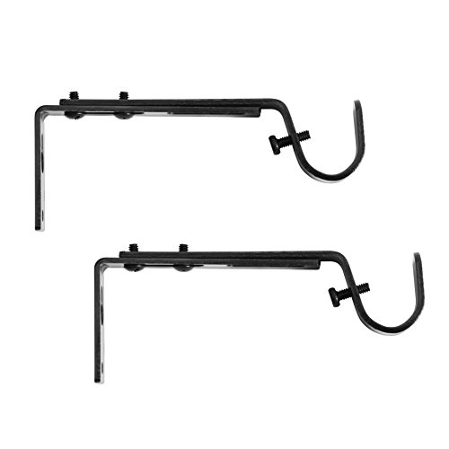 Kenney Adjustable Curtain Rod Brackets, Black (2-Pack)