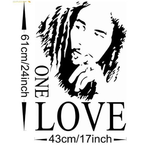 -. Binding : Kitchen -. Brand : MZY LLC -. Color : Black -. EAN : 7662558104048 -. Feature : Size: 17" x 24" approximately / No harm to the environment and health / Can be applied to many different types of surfaces / Material: PVC -. IsAutographed : 0 -. Label : MZY LLC -. Manufacturer : MZY LLC -. MPN : RONA-PN-2341304 -. PackageQuantity : 1 -. PartNumber : RONA-PN-2341304 -. ProductGroup : Home -. ProductTypeName : HOME -. Publisher : MZY LLC -. Studio : MZY LLC -. Title : MZY LLC (TM) Bob Marley ONE LOVE Vinyl Art Mural Wall Sticker Home Decal Decor Room Music Fan Color: Black, Model: -. UPC : 522396307926