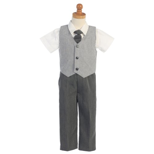 - Title : Lito Boys 4T Charcoal Seersucker Vest Pant Suit Set